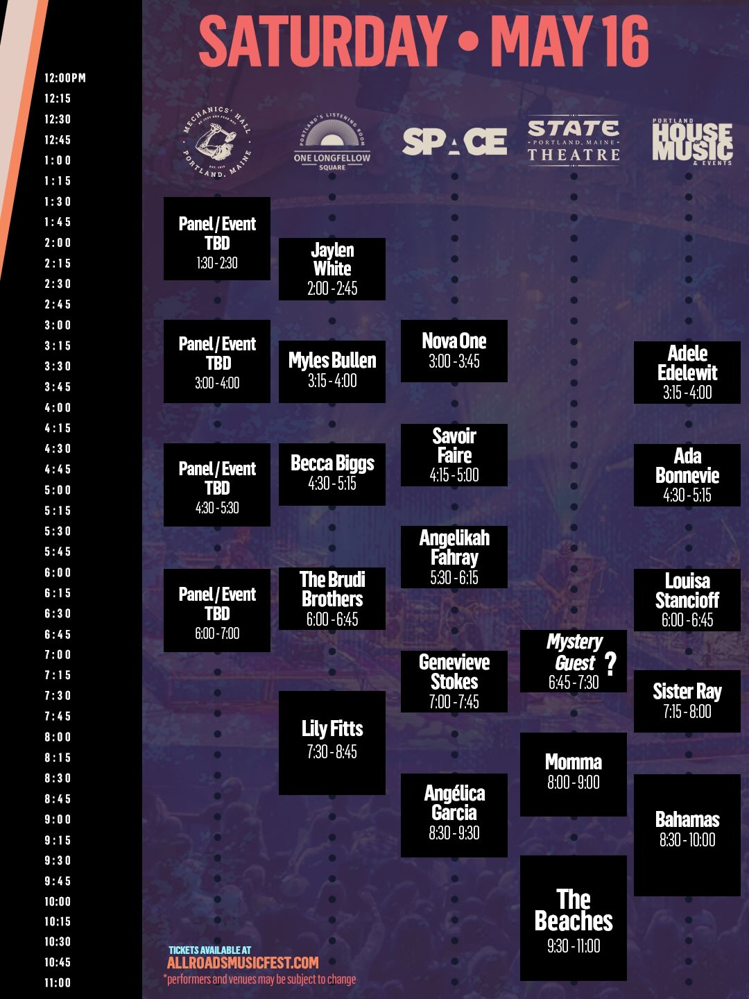 Friday night kicks things off at State Theatre, Oxbow, and Geno’s, before the festival expands across Portland on Saturday – filling rooms like SPACE, Portland House of Music, Blue, Flask Lounge, Mechanics Hall, and more with music all day and night.